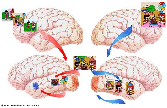 A seguir, utilizamos essas informações para promover uma ativação reversa dos sistemas parietais que remontam as cenas desses episódios e que por sua vez estimulam agora os neurônios das áreas occipitais primárias para que possamos imaginar ou relembrar o episódio em seus detalhes (Figura 2).