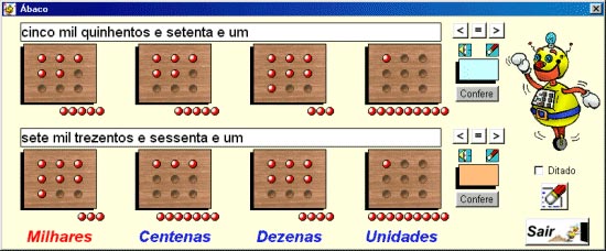 O Ábaco disponibiliza um conjunto de peças ( por exemplo, bolinhas