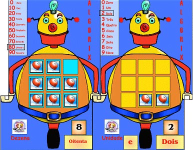 8 representa 8 unidades no número 18;8 dezenas no número 82;