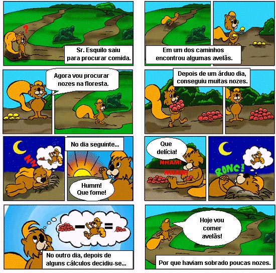 Imagine, agora, que ele comece a consumir os alimentos que encontrou. Ele tem que saber subtrair, para saber o quanto restou. Afinal, será que compensará voltar ao mesmo lugar outra vez? Ou algum outro sítio tem agora mais alimento?