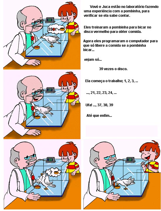 Dessa maneira foi possível, por exemplo, descobrir que o pombo tem uma grande capacidade de contar. E poderíamos fazer humor, dizendo que ele conta sem piar... isto é, sem falar.