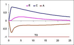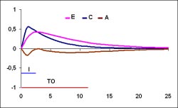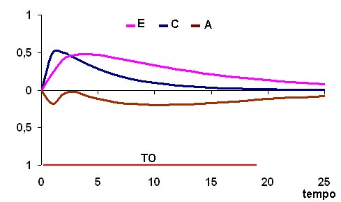 A evolução temporal dos componentes emocional E e cognitivo C se influenciam no controle da atenção A para realização de uma tarefa T no caso de um comportamento hiperativo (a) e de um comportamento desatento (b). O tempo operacional TO que indica o tempo de atenção que pode ser alocado para a realização da tarefa T é pequeno na hiperatividade e muito aumentado na desatenção. A impulsividade I é caracterizada por um comportamento socialmente inadequado, gerado principalmente pelo componente emocional.