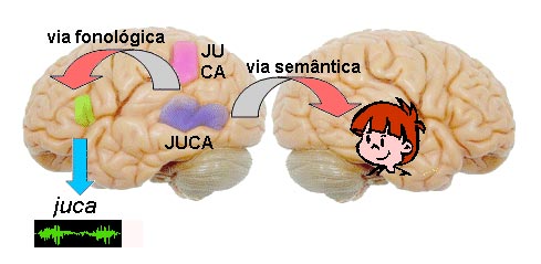 A leitura pode se realizar através de dois circuitos neurais distintos. Na leitura semântica a palavra como um todo é identificada na área de reconhecimento de palavras e a partir daí associada ao seu significado. Por exemplo, no caso de nomes, com a associação da palavra ao rosto, voz, etc. da pessoa correspondente. No caso da leitura fonológica, as sílabas que compõem a palavras são identificadas individualmente na área de reconhecimento de sílabas que deve ativar a área de Broca para produzir a fonação da palavra. Só depois do reconhecimento da palavra fonada que o seu significado é estabelecido. A disfunção da via fonológica é um fato muito freqüente nas crianças disléxicas ou com DDL.