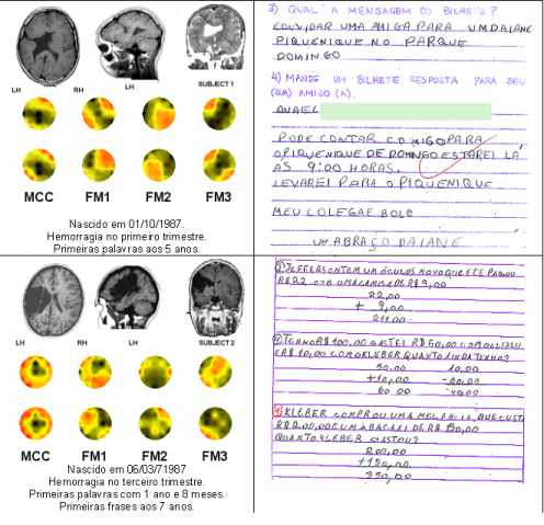A despeito das lesões cerebrais congênitas, as crianças alcançaram um bom desenvolvimento na leitura, escrita e cálculo aritmético. Os Mapas Cognitivos Cerebrais mostram a realocação da funcionalidade cerebral que permite esse desenvolvimento.