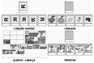 O estudo da atividade elétrica associada à realização dos jogos da Fig. 2 pelos alunos matriculados na APAE-Jundiaí mostraram que (Leite, 2000; Rocha et al, 2000; Serapião, 2001):