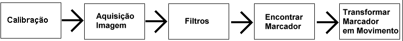 Essa é a seqüência básica de todo o sistema, primeiramente configuramos o ambiente de uso com todos as informações possíveis sobre o ambiente, depois a execução propriamente dita do software em background que fica repetindo todos os procedimentos anteriores a partir da aquisição da imagem até a localização, reconhecimento e movimento do objeto marcador. Lembrando que todos esses passos são processados praticamente em tempo real.
