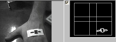 Neste caso o mouse irá se movimentar nesta direção enquanto o marcador estiver nesta posição. Para que o mouse pare, basta retornar o marcador ao centro do quadro. Para chegar a esse resultado o processo de transformação do marcador em movimento passa por duas fase :